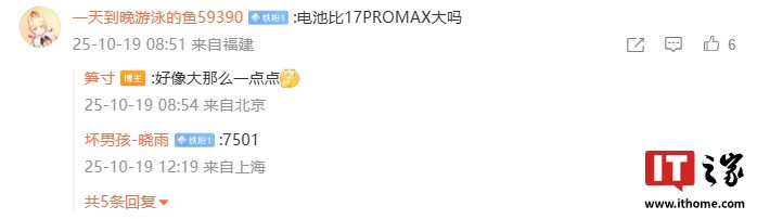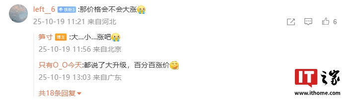 IT之家注意到,有用户询问新机价格会不会大涨,笋寸表示“大...小...涨吧”。另外,还有用户询问REDMIK90ProMax的电池容量是否比小米17ProMax大,笋寸回复“好像大那么一点点”,这也意味着REDMIK90ProMax的电池容量将大于7500mAh。